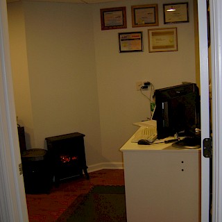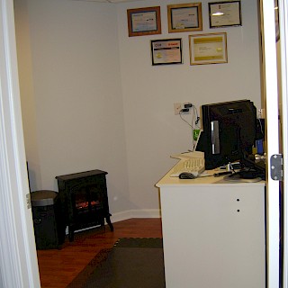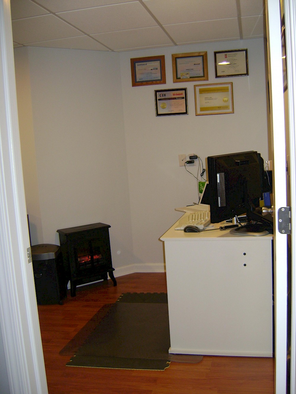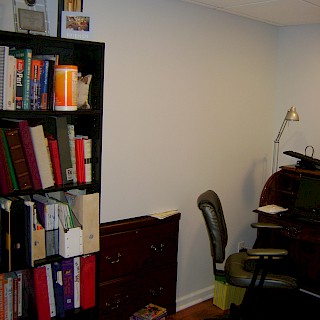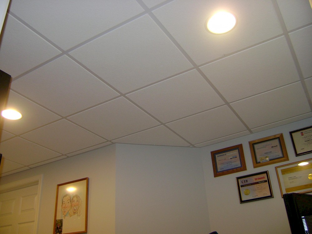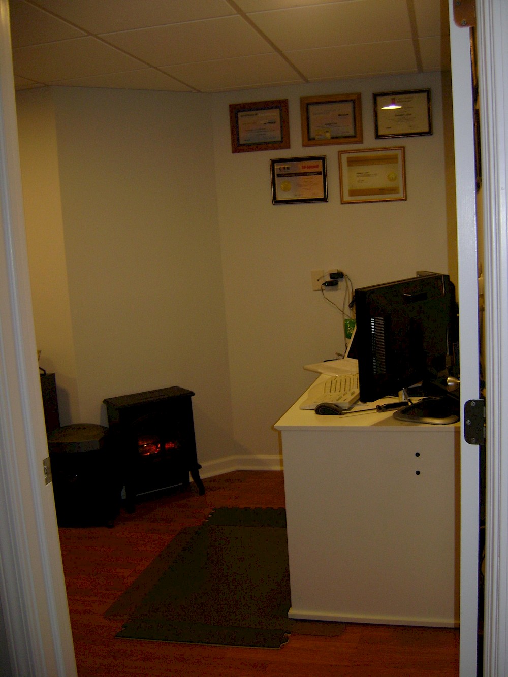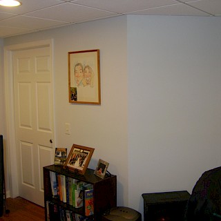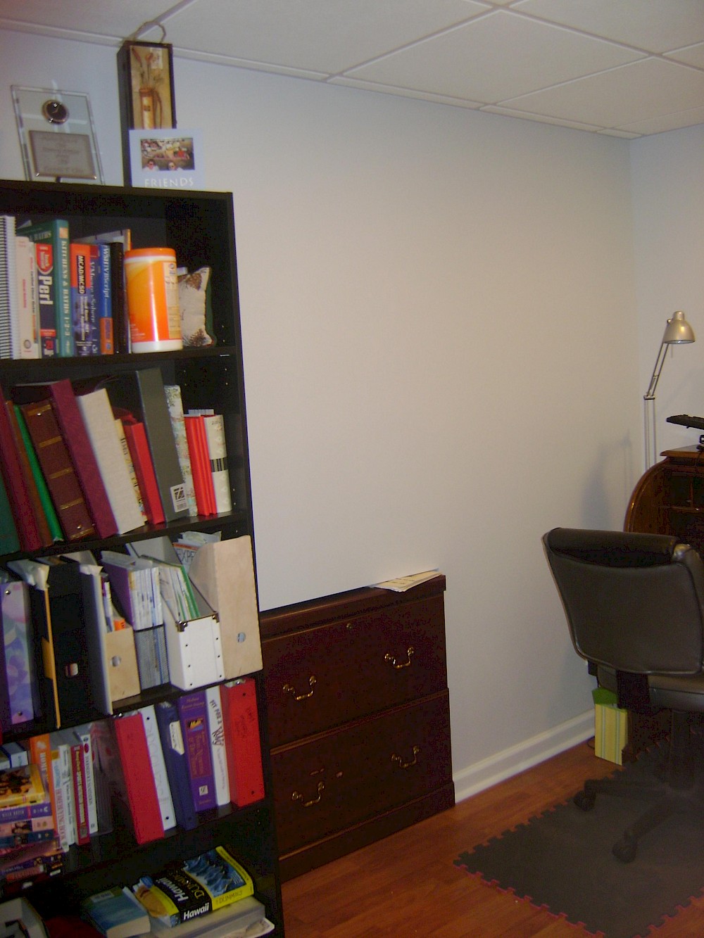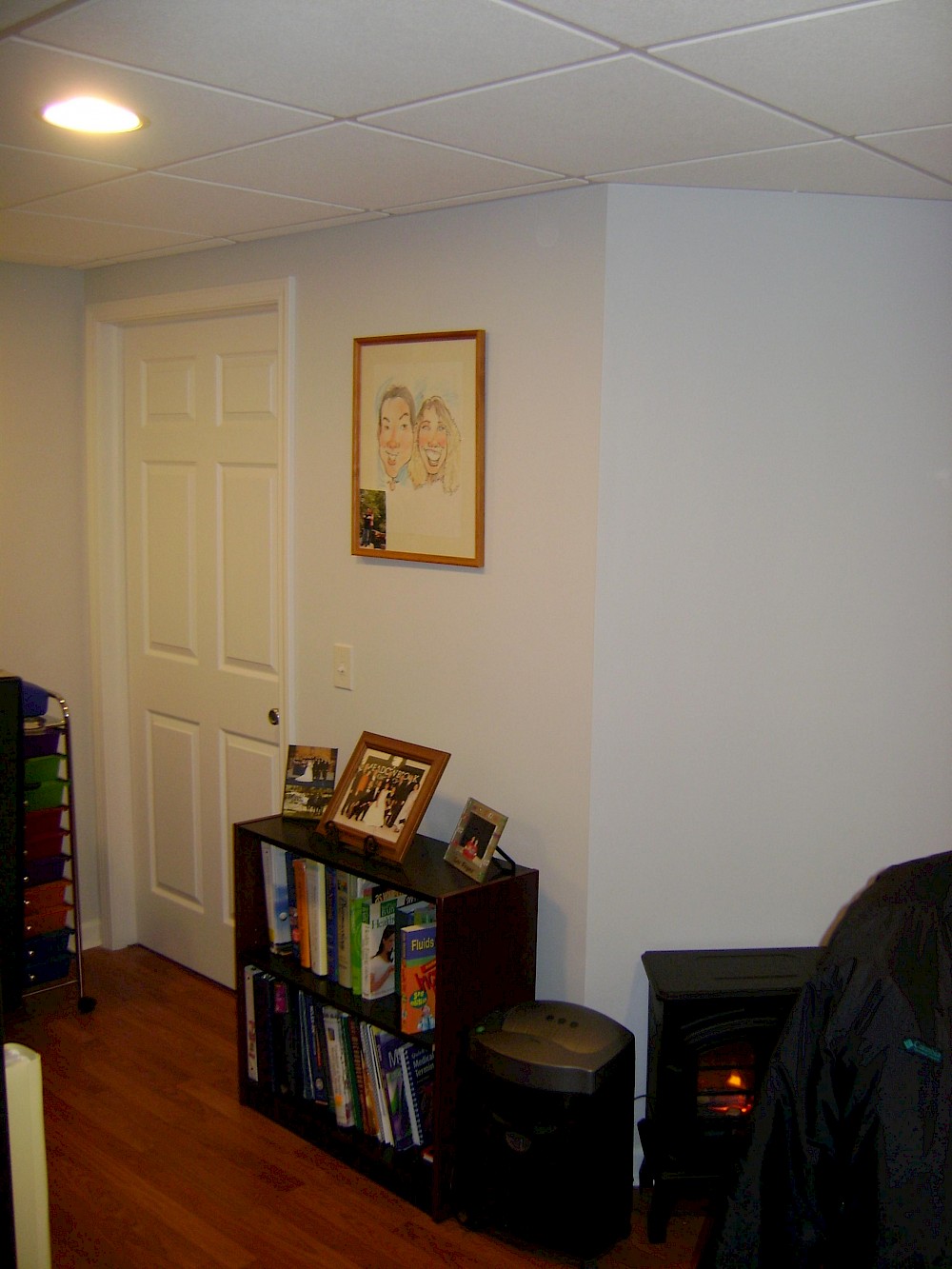 This office built into the basement of a Chelsea home was a quick job taking less than two weeks for Exemplar Carpentry. We did the framing and electrical first and followed that with the installation and finishing of the drywall. From there we painted and added a laminate flooring, suspended ceiling, doorway, and trim.